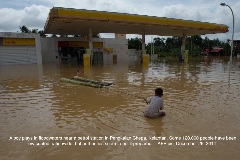 The Barisan Nasional government continues to display a stunning degree of ineptitude in running the country, careening from one catastrophe to another. The response to the disastrous flooding in Malaysia’s east coast is but the latest example of this, as the following insightful commentary by Malaysia Insider notes. How is it that there was no early warning or so little emergency planning for what is, after all, an almost yearly event save only for the magnitude of the flooding this year? How long will it take them to get their act together? Are they even capable of getting their act together anymore? ~ Dennis Ignatius
